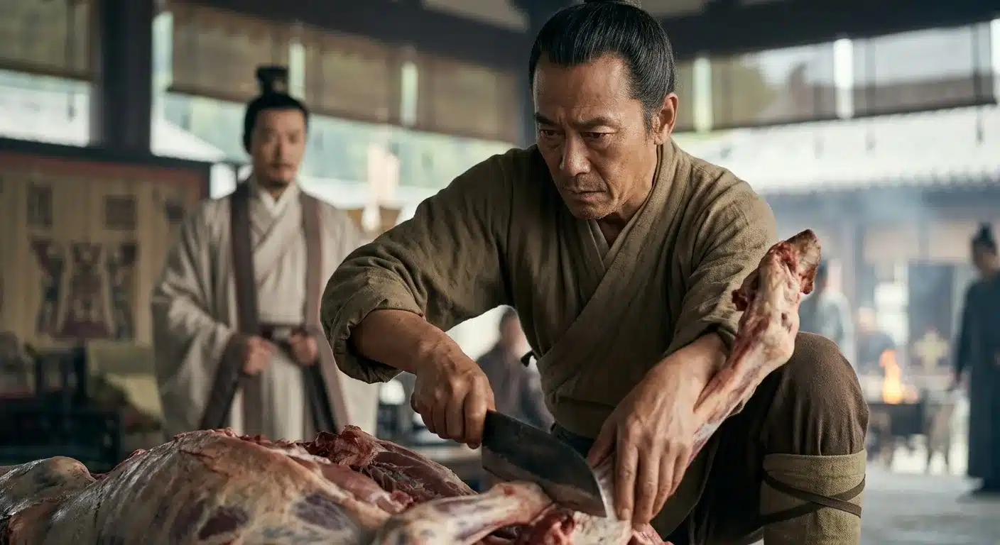 Le geste décrit n’est pas une violence brute mais une technique qui suit les articulations naturelles. Le couteau indique qu’un savoir-faire est requis : la libération ne se produit pas d’elle-même. Le bœuf, animal sacrificiel par excellence dans la Chine ancienne, confère à l’opération une dimension rituelle. Et les cornes représentent ce qui doit être détaché, ce qui fait saillie et sera séparé du corps principal.